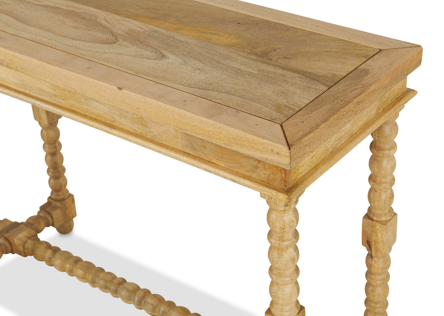Made from mango wood, this vintage-inspired console table features an extra-long tabletop and ornate bobbin detailing. With a warm finish and just the right amount of character, this console table offers plenty of space to style your favourite décor. This piece is part of the Wanderlust Collection by Canadian designer, Aly Velji. Drawing from global influences and traditional craftsmanship, this collection features furniture and décor inspired by far-away places.