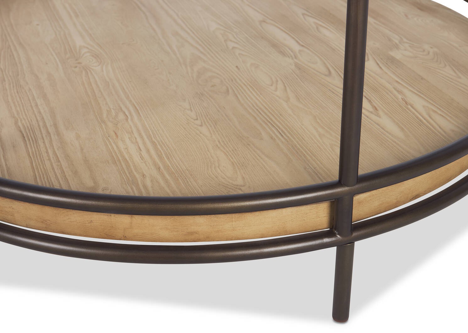Keep your living room feeling open and light with the Bower Coffee Table. With its circular shape, solid wood and vintage brass metal details, this round coffee table is a natural fit in contemporary homes with a sofa chaise or large sectional.