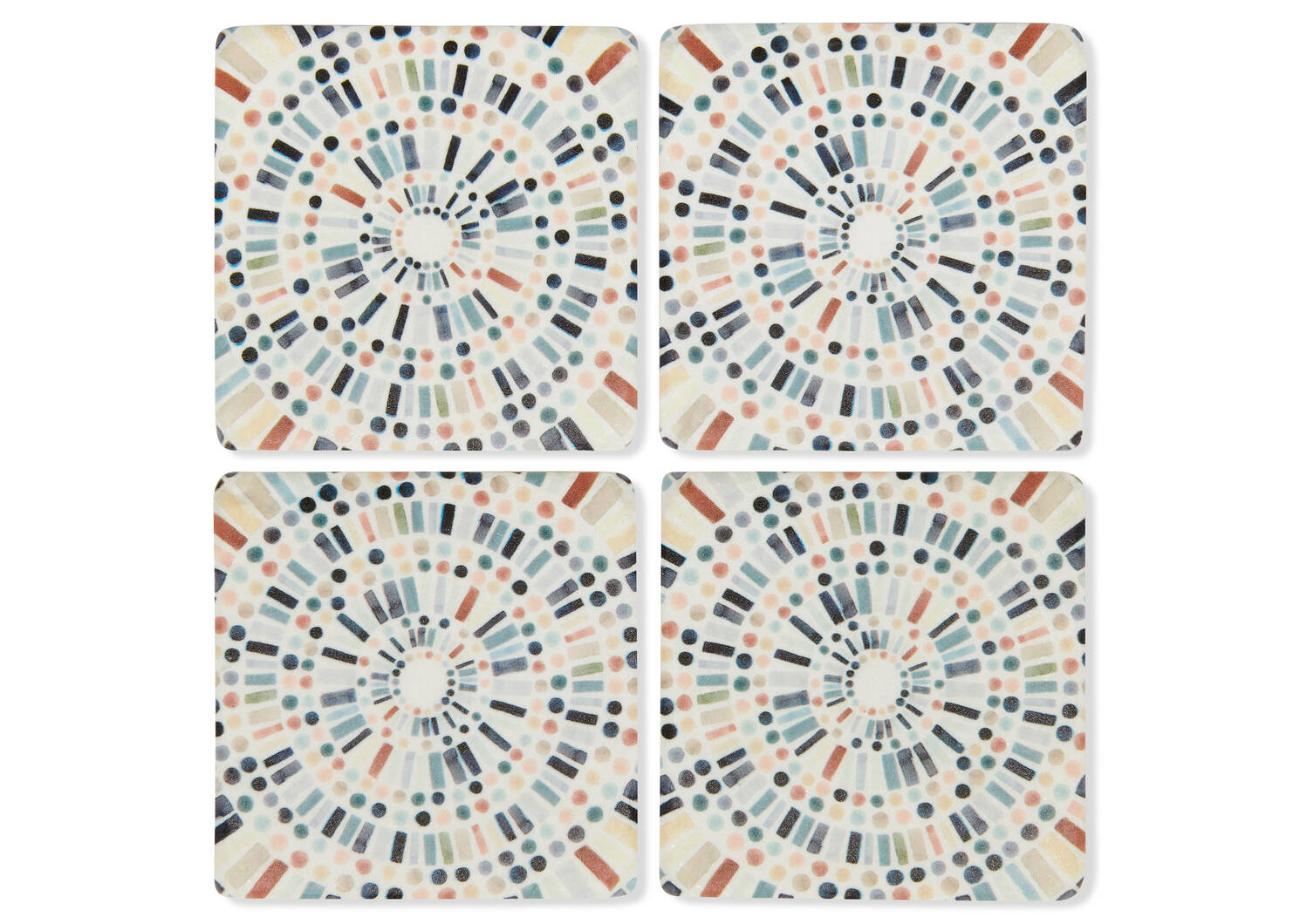 Protecting your furniture with trending style, our Kaleidoscope Coaster Set is a must-have companion for your favourite table. Use these colourful coasters to bring nostalgic style to your dining or living room.