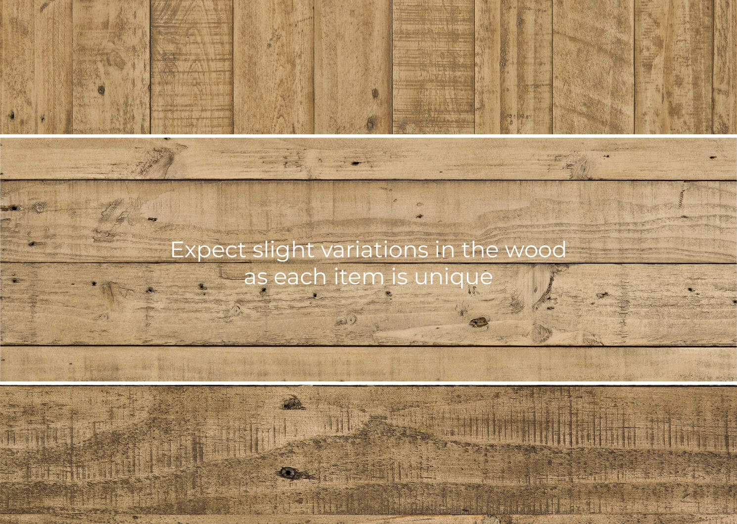 • Each piece of reclaimed wood is carefully hand-selected and finished