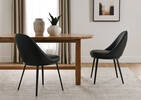 This all-black dining chair pairs charcoal, synthetic leather with a sleek metal frame that’s easy to clean and style. Soft curves