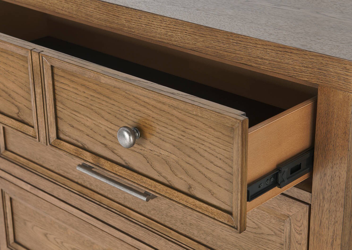 - Tiroir du bas doté d'un fini en chêne