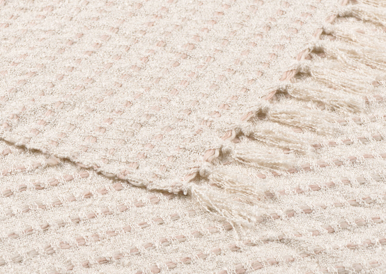 • Jeté tissé doux de couleur ivoire avec des nuances roses