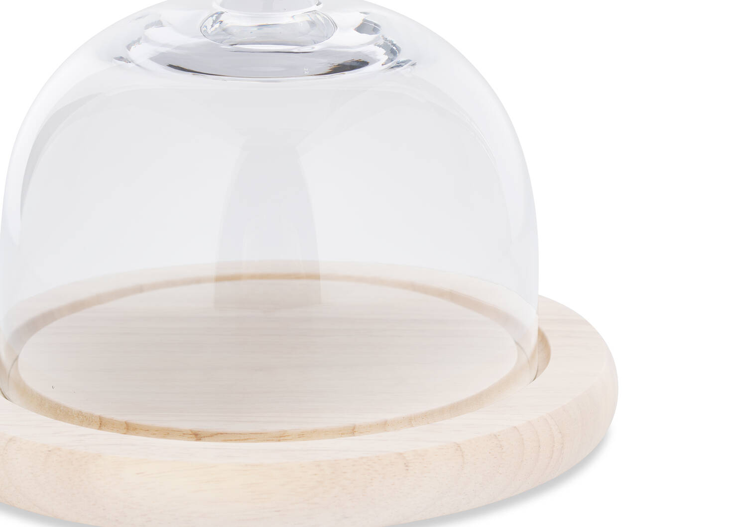 Elevated hosting meets rustic charm. This glass dome with a whitewashed rubberwood base showcases and protects your seasonal culinary creations, effortlessly blending style with function.